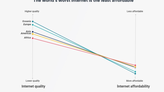 Using information from the Digital Quality of Life index, Surfshark was able to make up one's mind that the regions that pay the most for net also receive the worst-quality connections. Oceania has the almost affordable and likewise the best overall quality cyberspace in the world, followed by Europe and Asia. The Americas have the fourth-most-expensive cyberspace and also have the 2d-worst connectivity. Africa comes in last for quality and affordability.